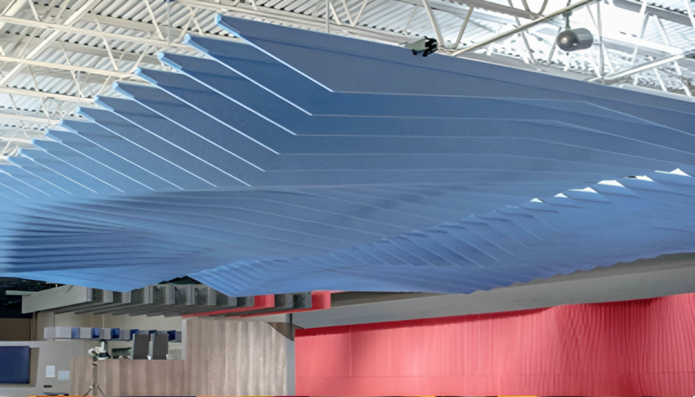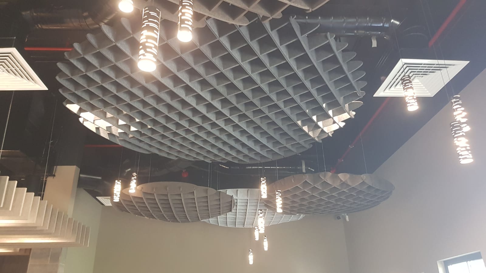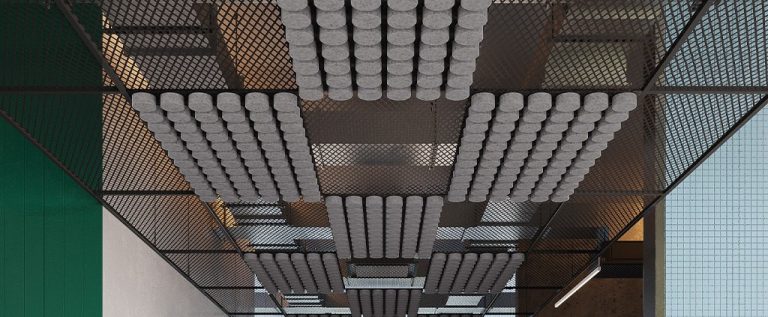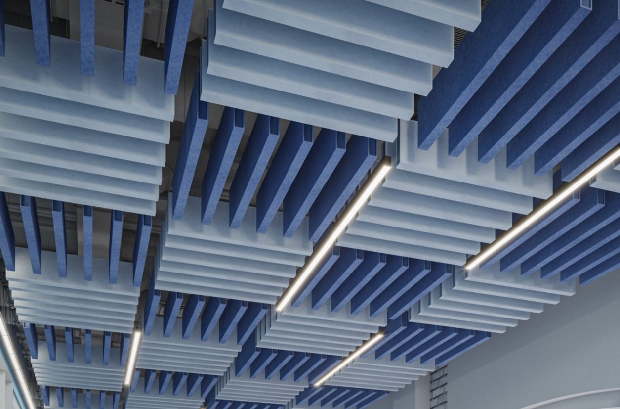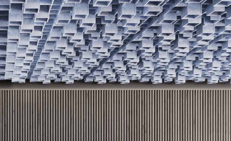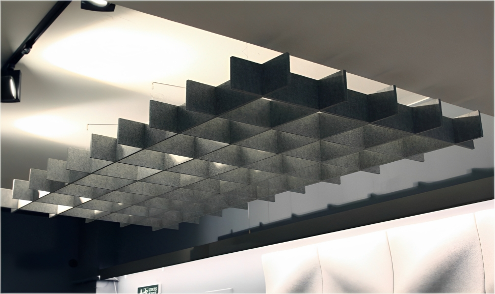 El mundo de la acústica ha cambiado mucho desde los años 60 del siglo pasado. Las placas de techo y paneles de antaño estaban fabricados de una sustancia llamada fibra mineral – un material resistente al fuego pero profundamente feo – que se desmorona, aísla térmicamente y cubre grandes áreas.